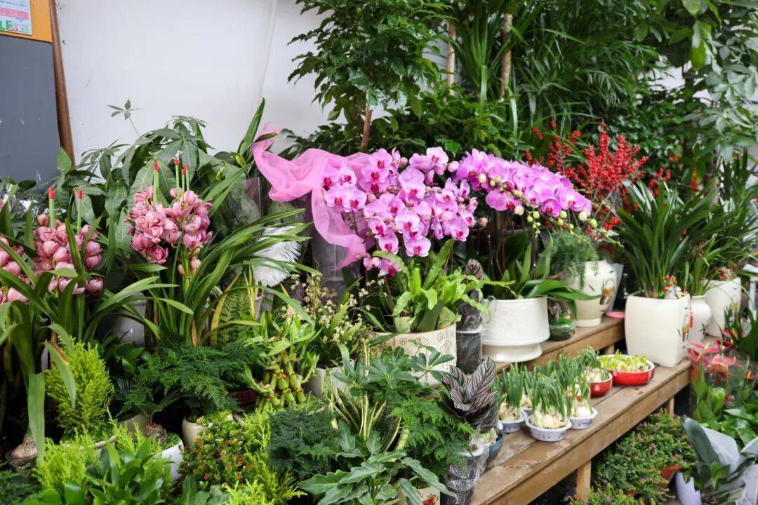 从田间到线上,冬日花卉也装点着线下花店的柜台。在各色花店中,冬季花卉被巧妙搭配成花束或盆栽,静候顾客挑选。